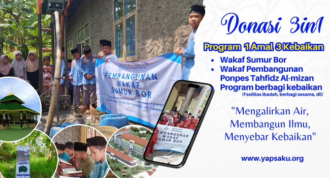 DONASI 3IN1 - 1 AMALAN 3 KEBAIKAN (Wakaf sumur bor, wakaf pembangunan ponpes yatim dhuafa almizan dan berbagi untuk yang membutuhkan)Yayasan Peduli Sahabat Negeriku